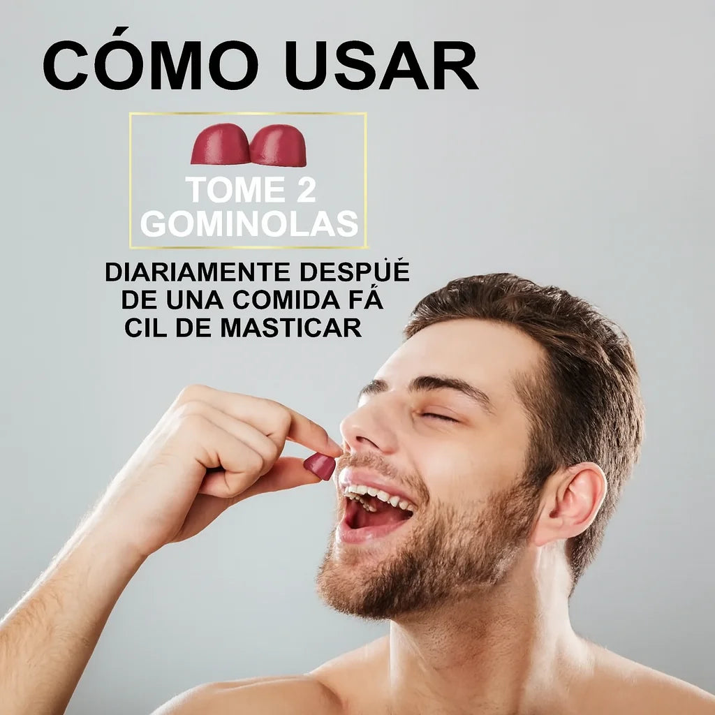 Toma 1 a 2 gomas al día, preferiblemente antes de actividades físicas o laborales intensas.
