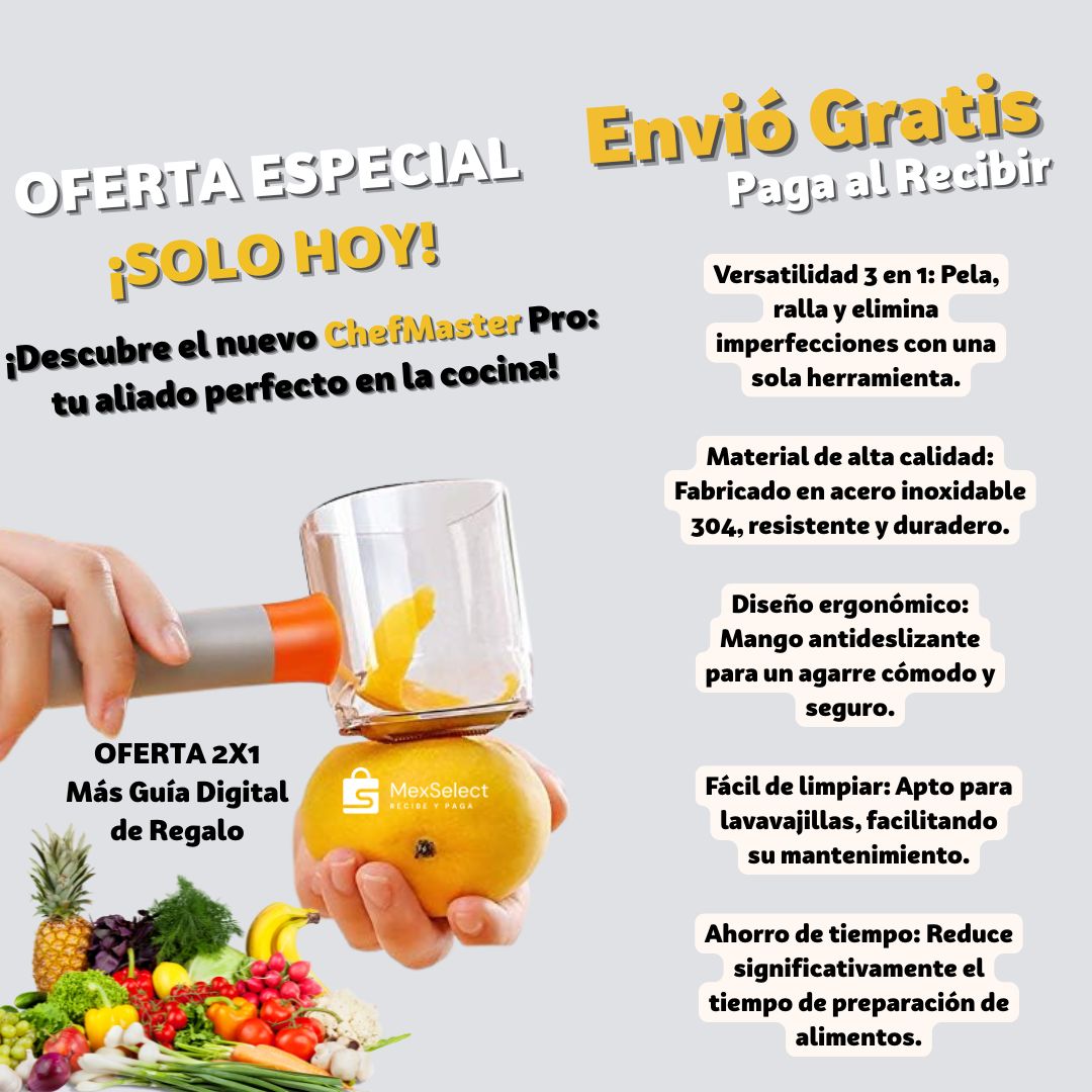 Con ChefMaster Pro, reduces el tiempo de preparación, obteniendo cortes perfectos y aprovechando al máximo cada ingrediente.