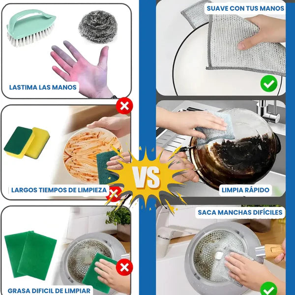 Más poder de limpieza frente a fibras y esponjas comunes.