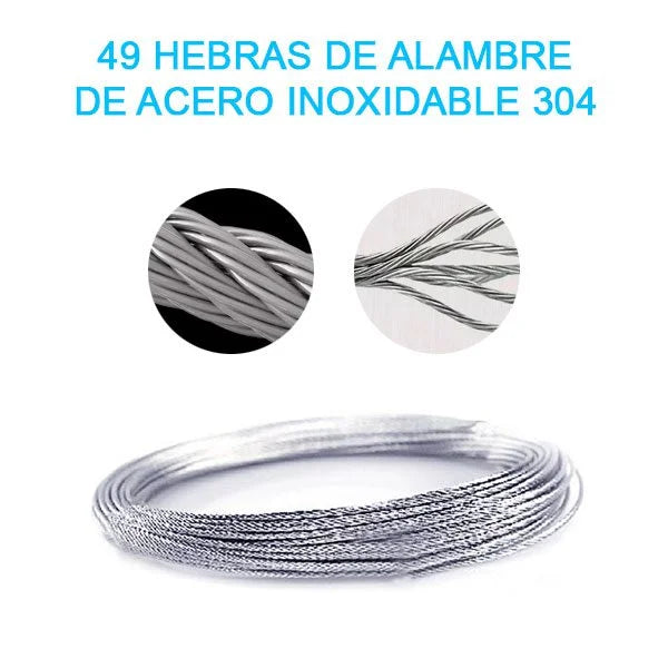 Más resistente gracias a sus cables de acero 304.