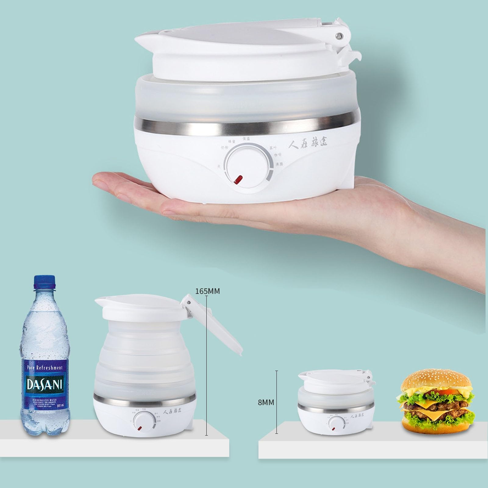 En mis viajes tenía que calentar agua en microondas ajenos o cafeteras dudosas. Mi hervidor ocupaba toda la maleta y derramaba agua.