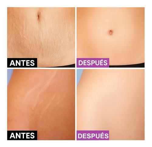 Puedo usar falda sin preocuparme, ¡las estrías se están desvaneciendo! Mi piel se ve más clara, lisa y firme. Me siento segura otra vez.