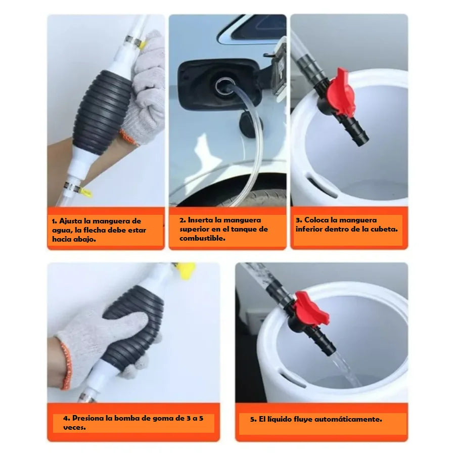 Transfieres gasolina limpia y rápido, sin manchar ni desperdiciar.