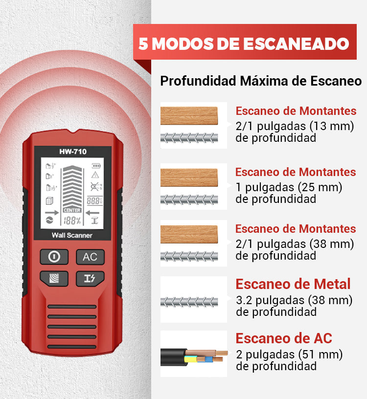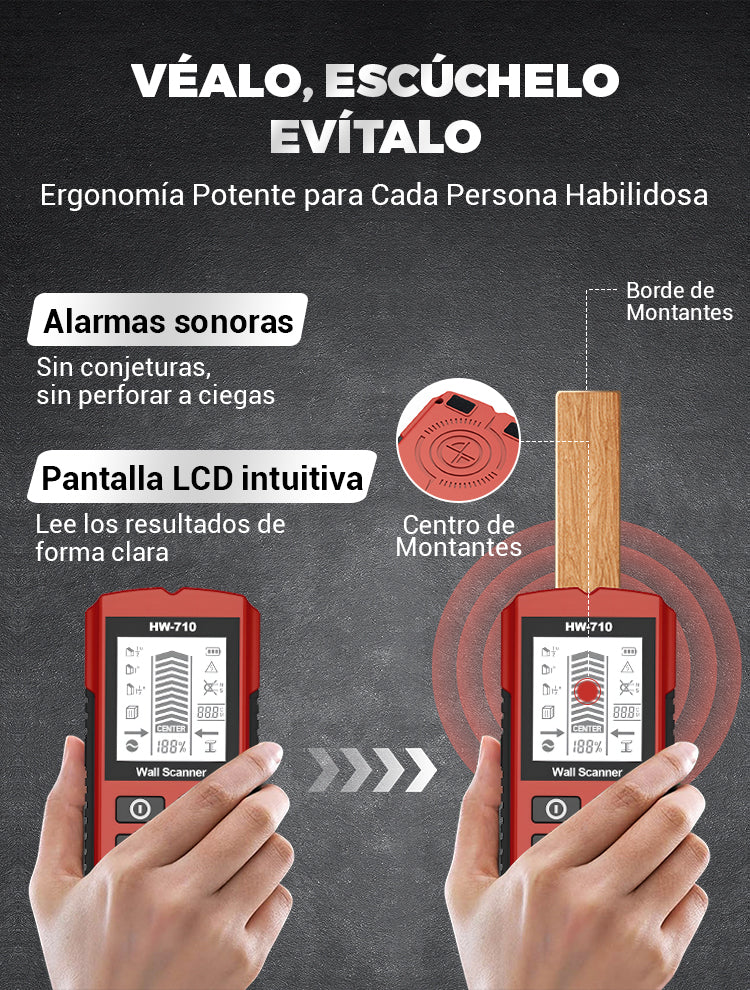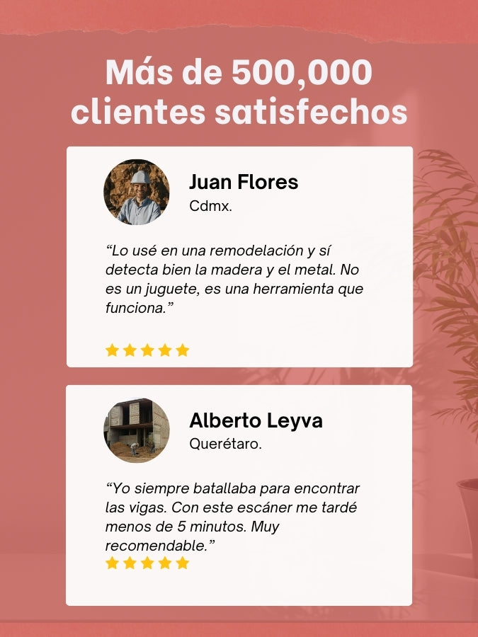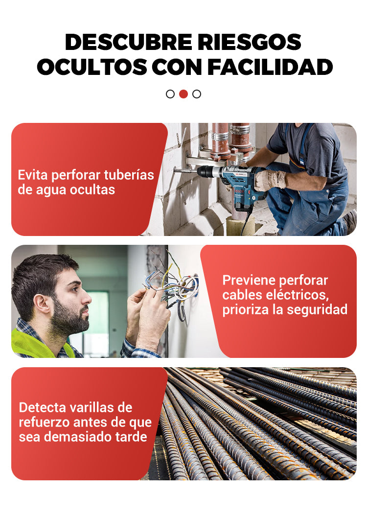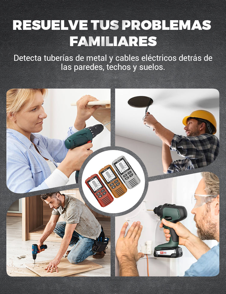 “Ahora encuentro vigas, pernos y madera fácilmente antes de instalar.” “Puedo perforar con tranquilidad porque detecto cables activos y metales en segundos.”
